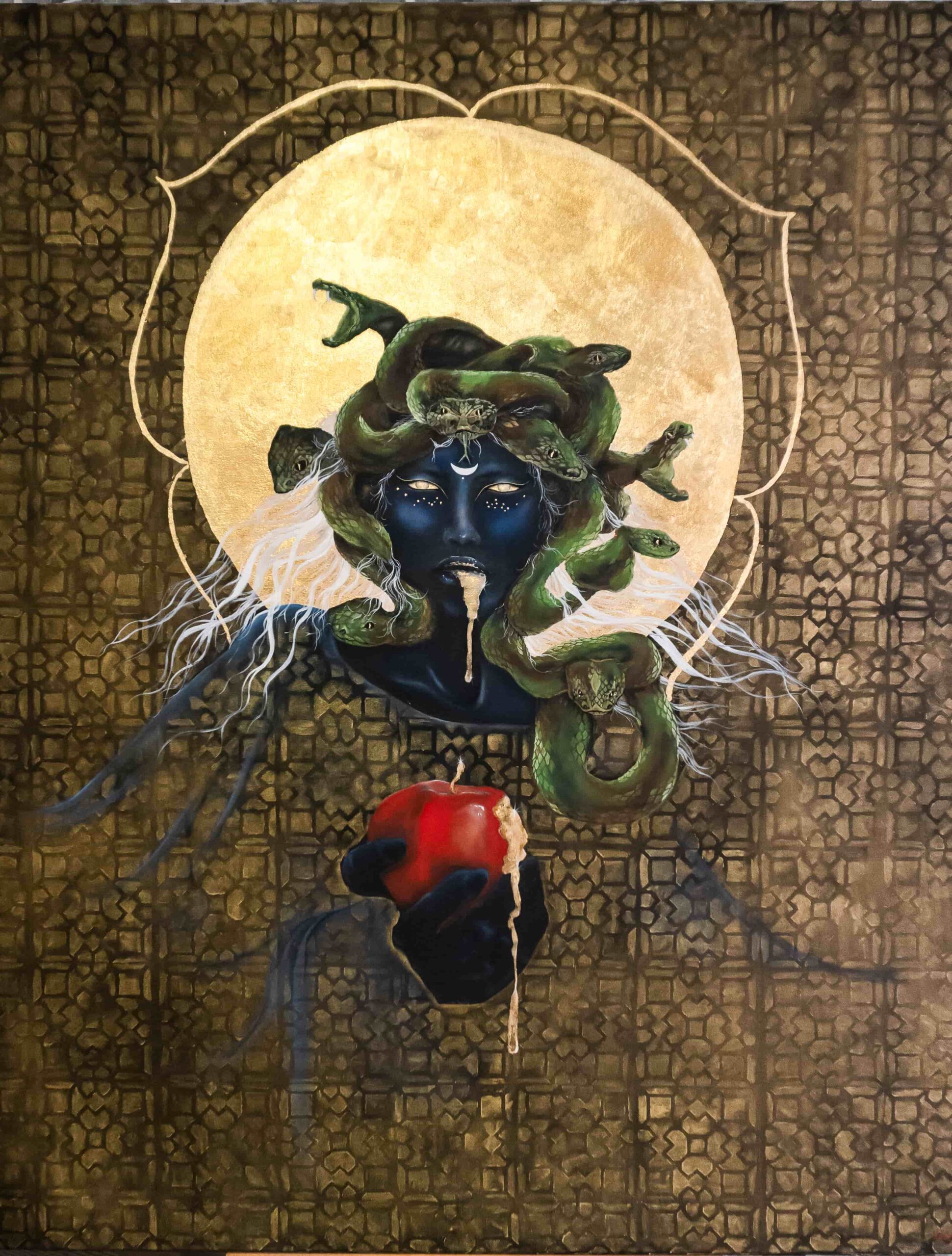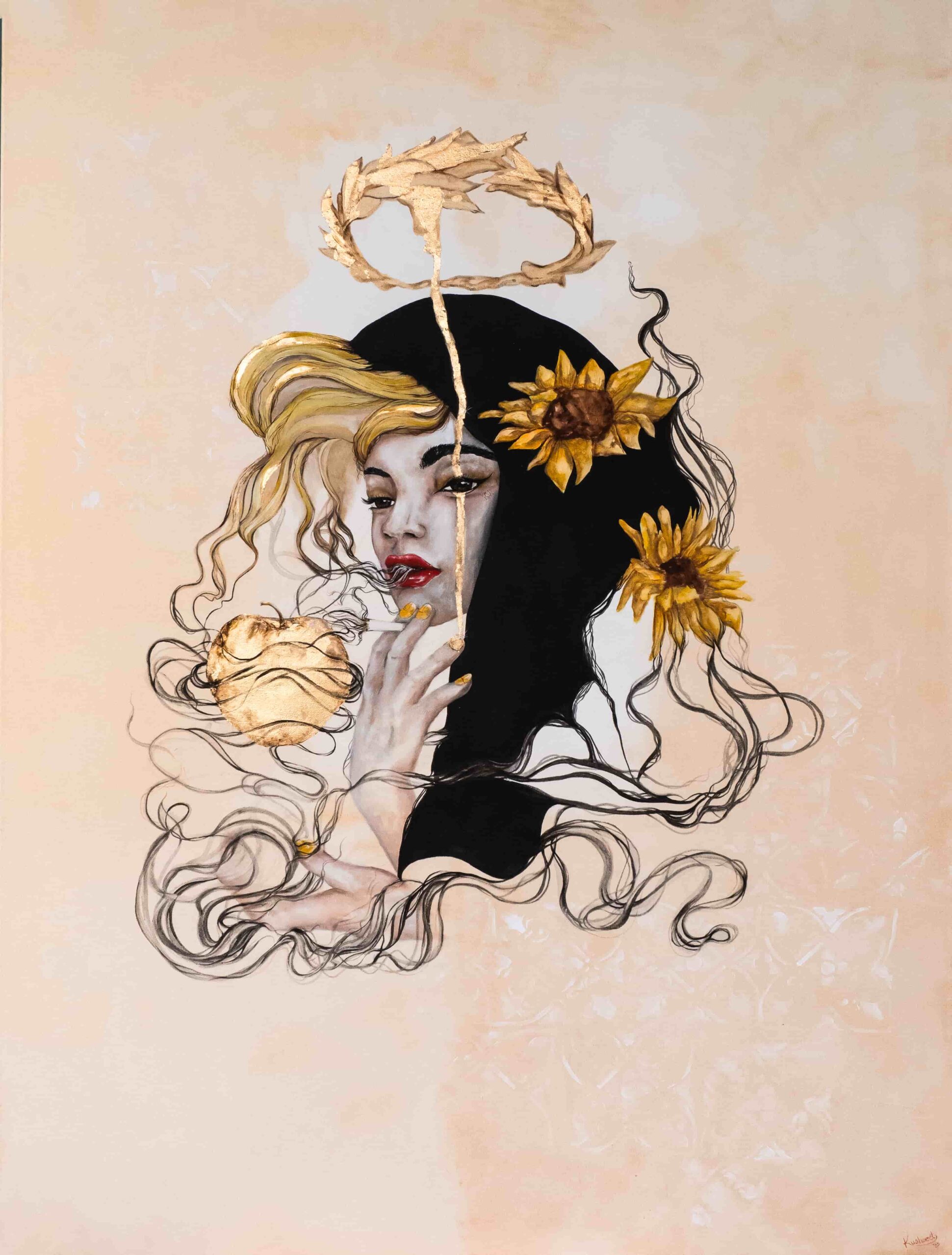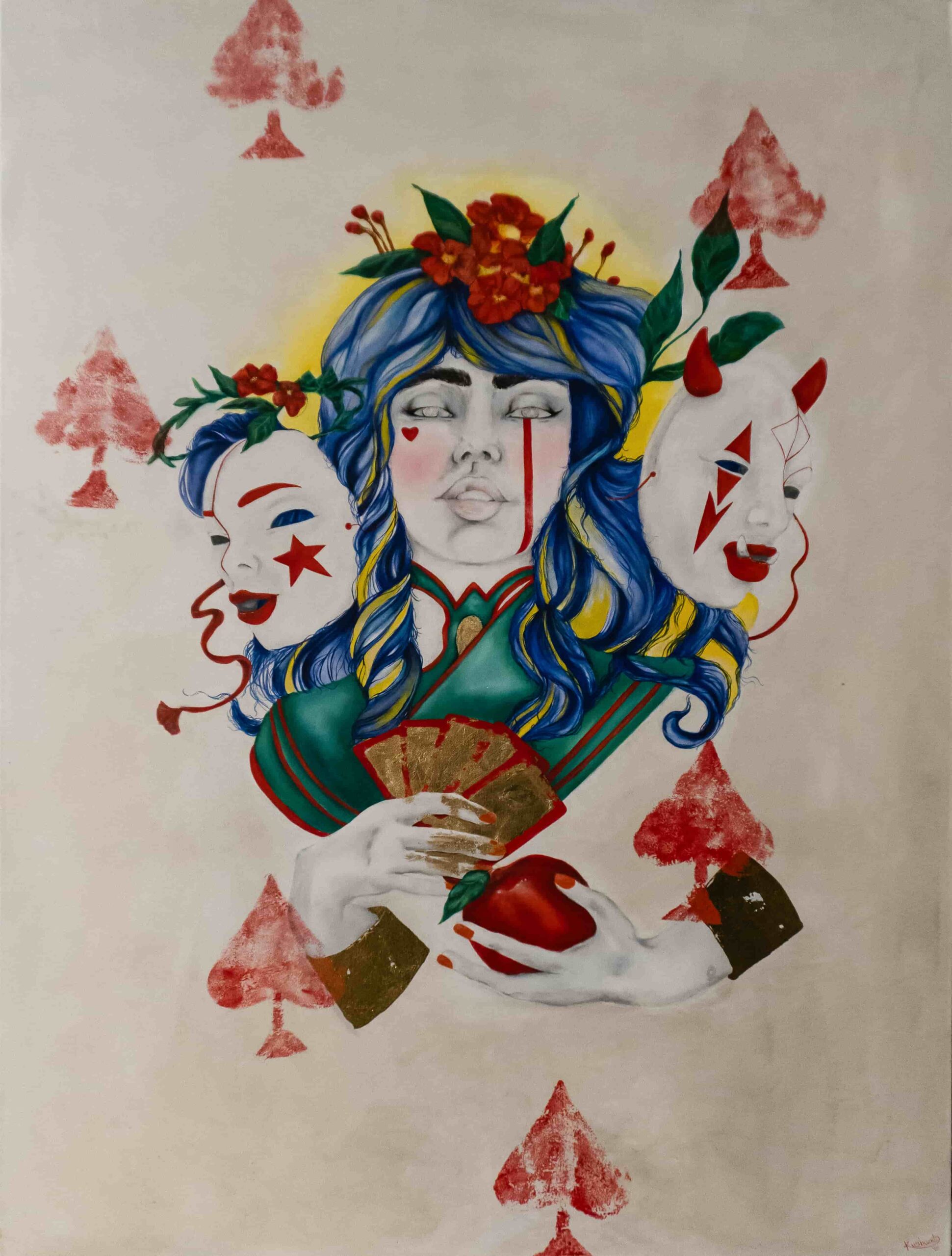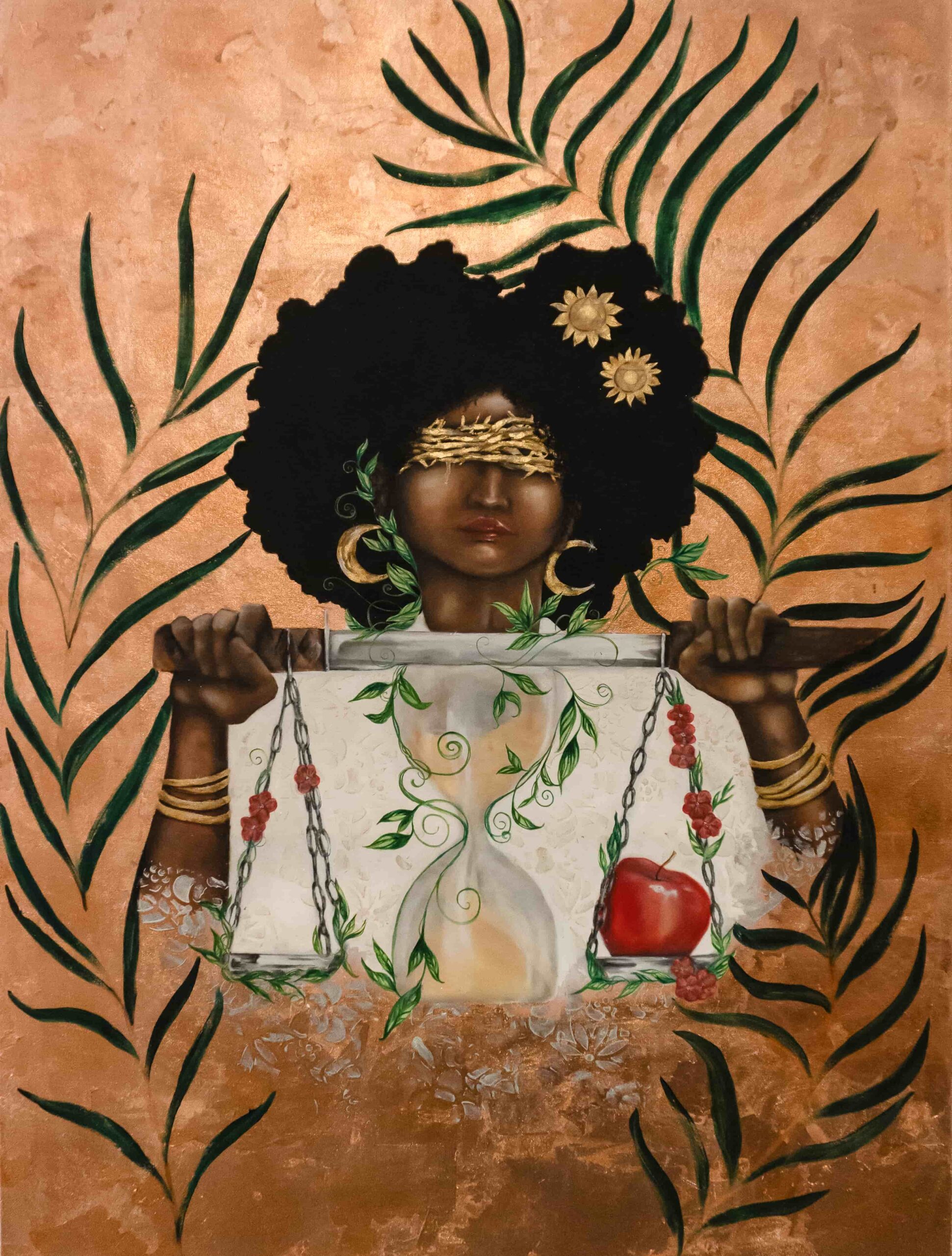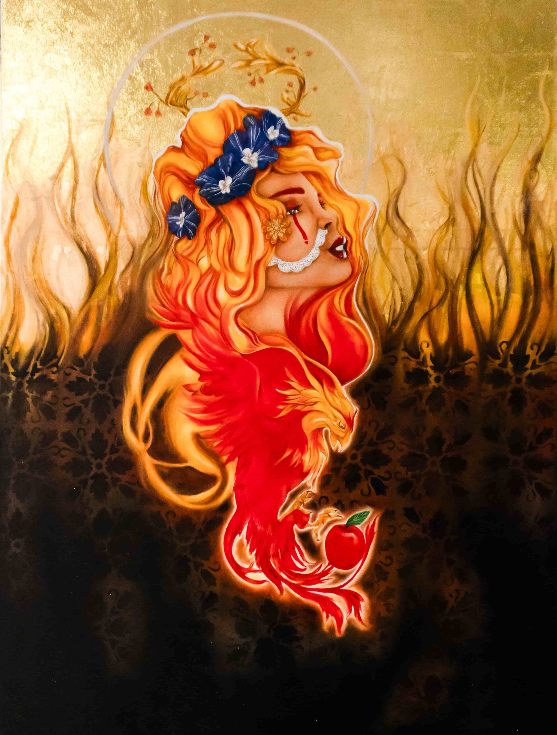I paint to explore the internal strength, mythology, and complex layers of the modern female identity. My work combines acrylics, oils, and metallic leaf to create bold, figurative pieces. I am fascinated by duality—the contrast between strength and vulnerability, light and shadow